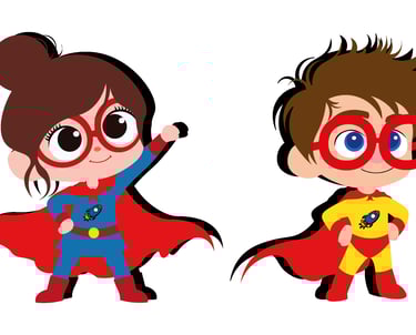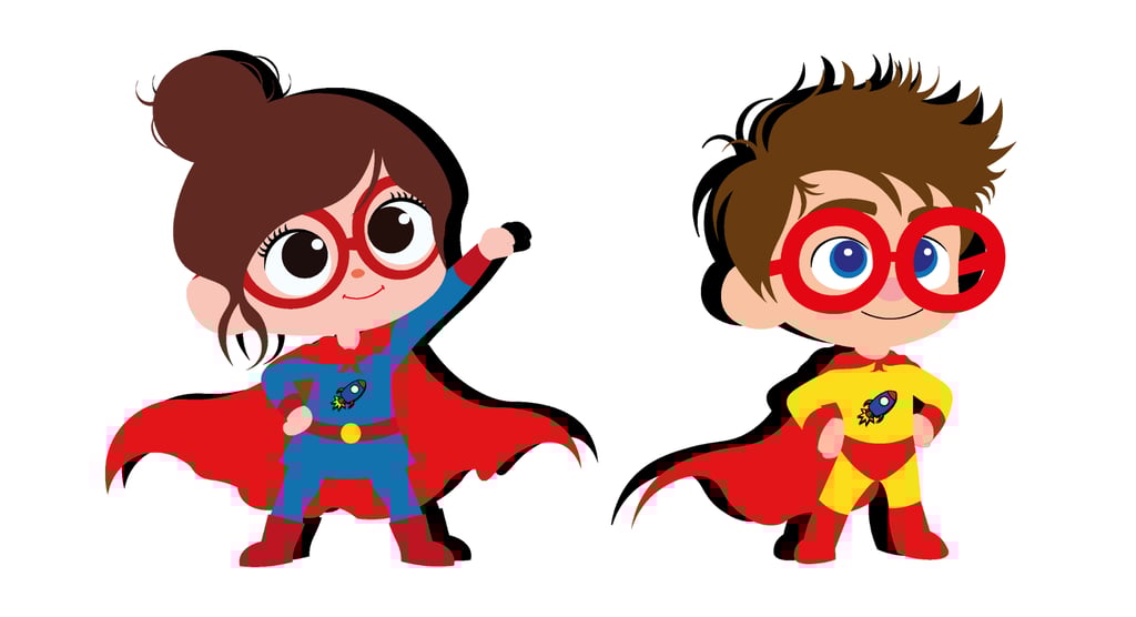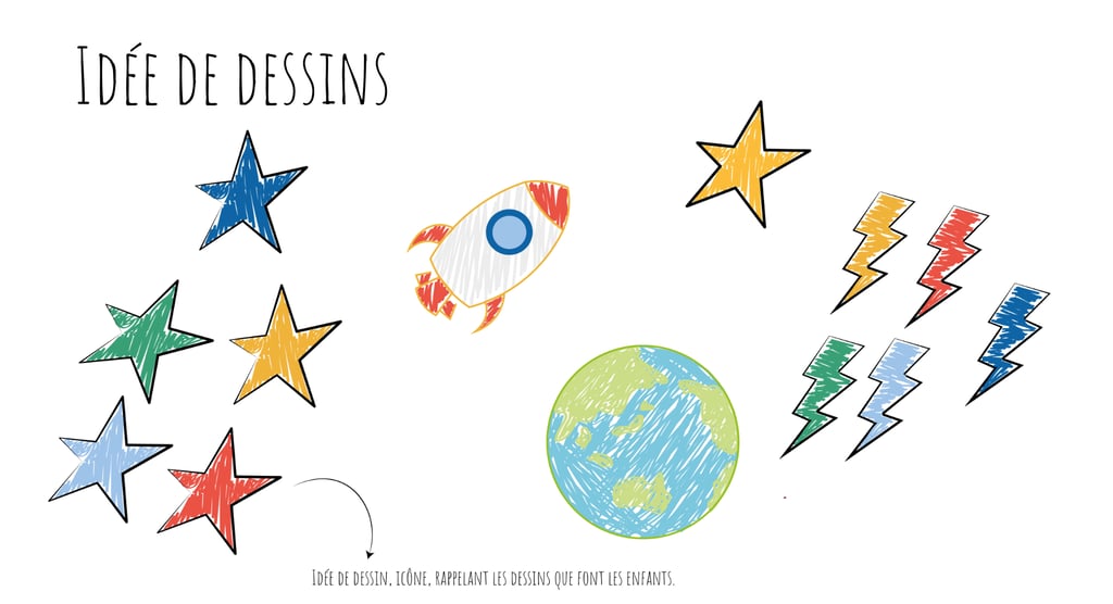 Pour la charte graphique, afin de rester dans l'identité de Start-Up Heroes, j'ai décidé de tout créer à partir de petit super héros de style cartoon, avec un style fun et coloré, attrayant pour les enfants de primaires.