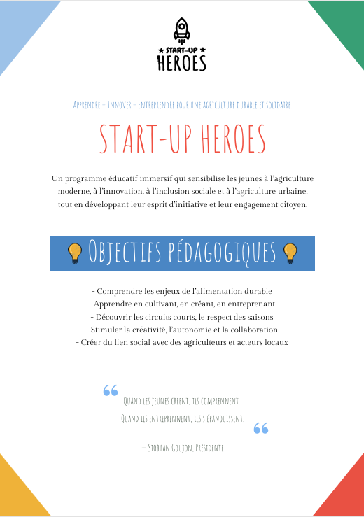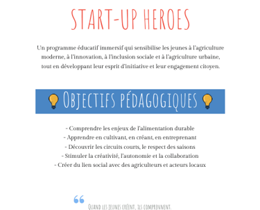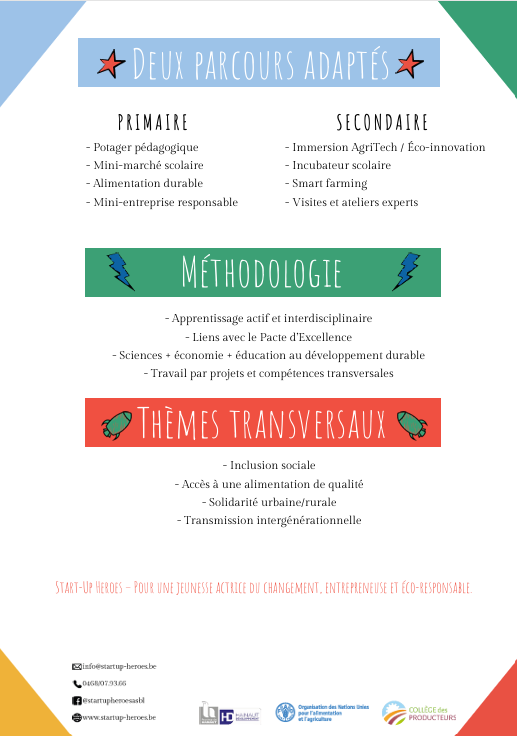 Le projet Start-up Heroes a pour but d’initier les jeunes de cinquième et sixième primaire à l'entrepreneuriat de manière ludique et interactive.