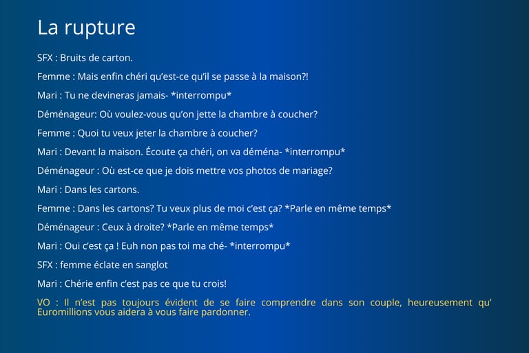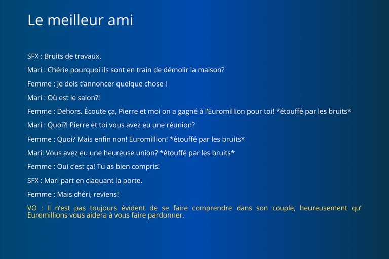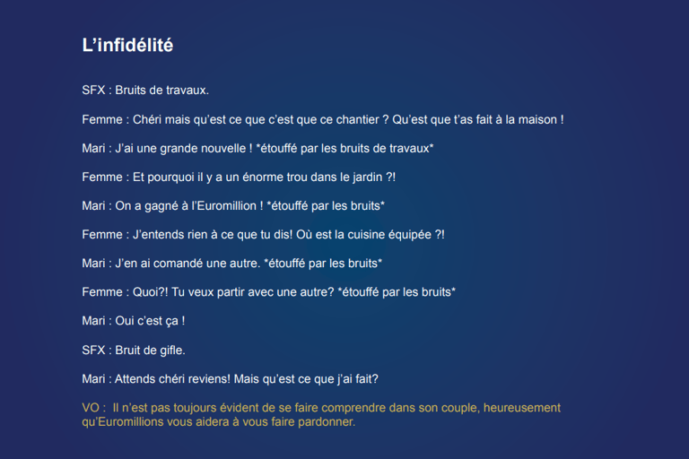 Le but de cette campagne était de réaliser trois spot radio pour EuroMillions tout en se basant sur un insight.