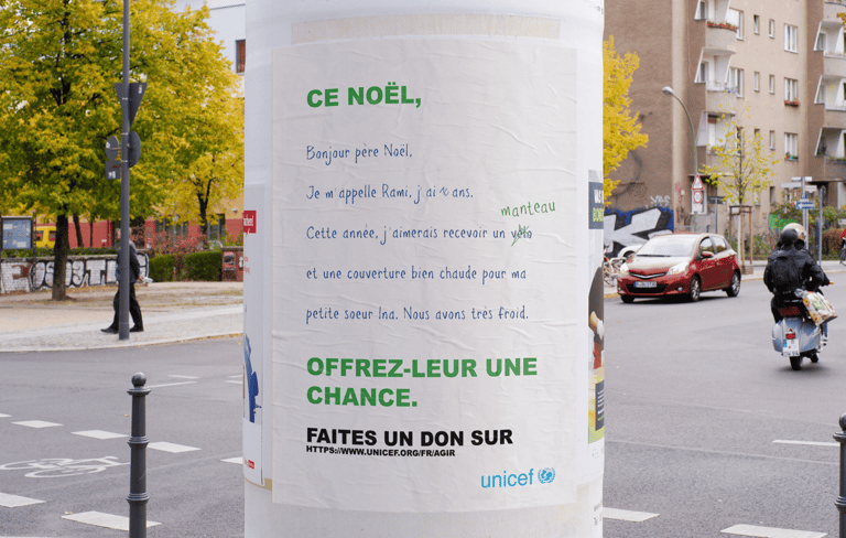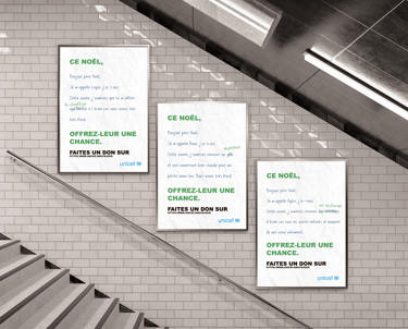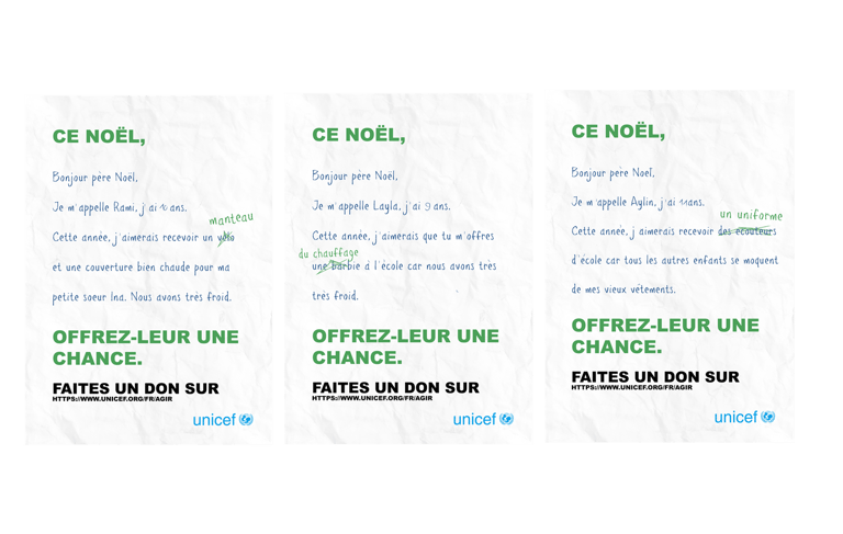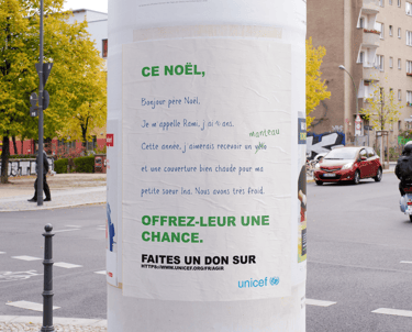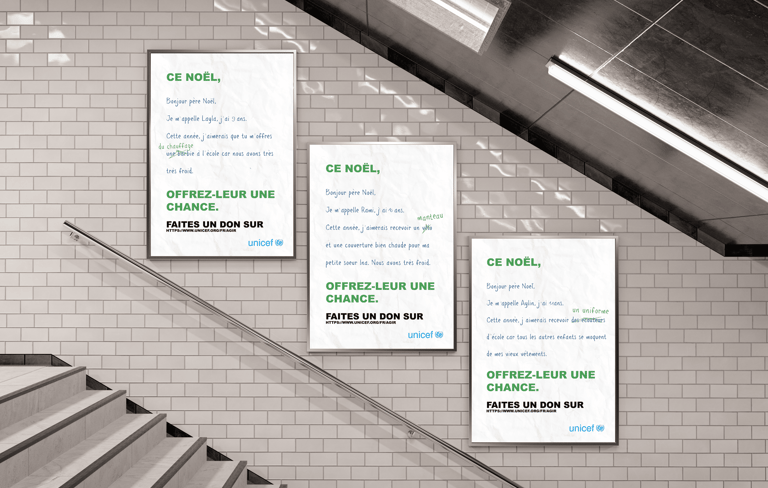 Le brief de ce projet était de créer une campagne d’affichages pour les fêtes de Noël et l’hiver afin de sensibiliser les gens au fait que les enfants du Proche-Orient meurent de froid.